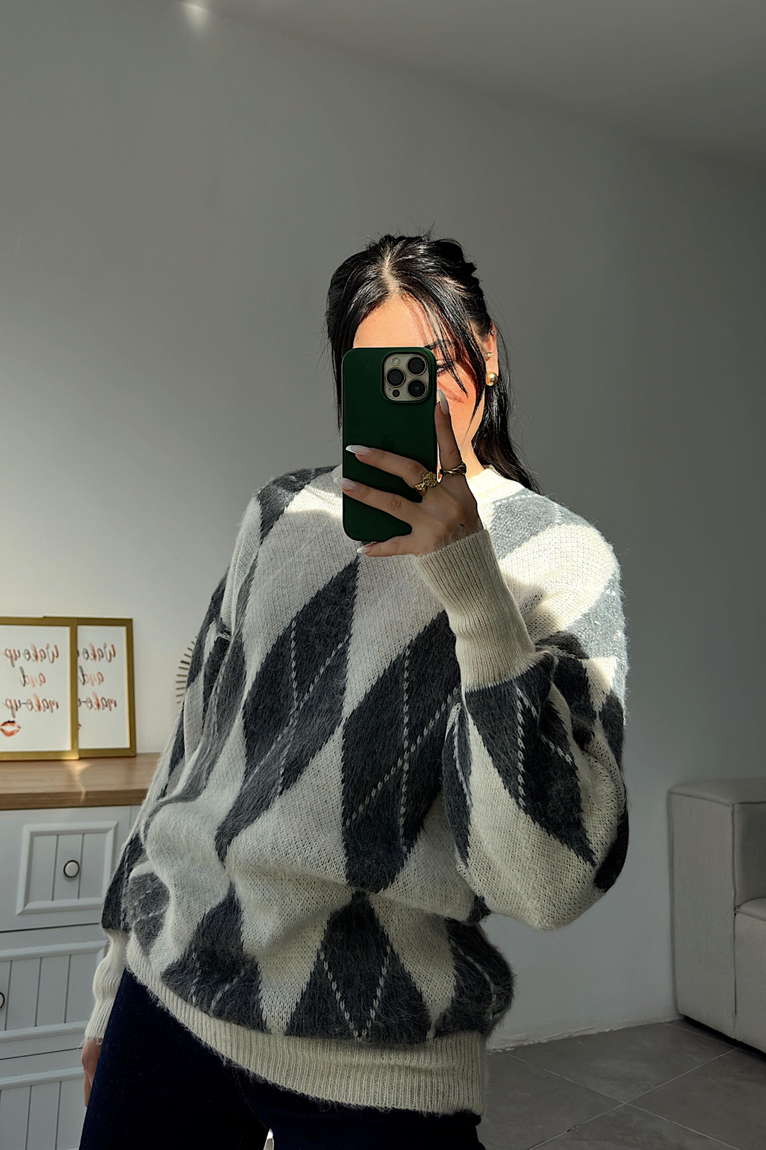 Baklava Desen Triko Kazak Ekru Baklava Desen Triko Kazak Haki