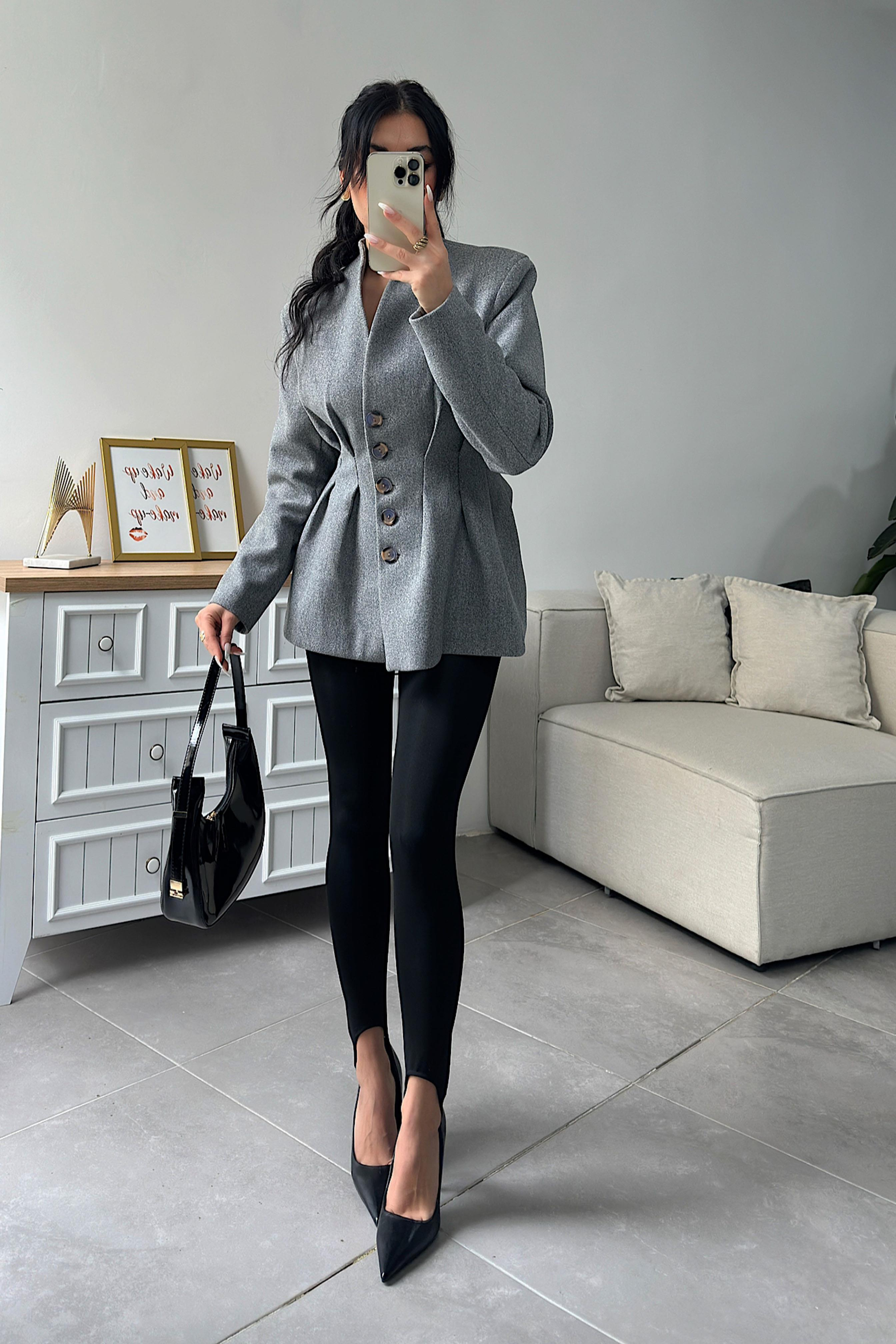 Beli Pens Detay Düğmeli Kaşe Ceket Taş Beli Pens Detay Düğmeli Kaşe Ceket Antrasit