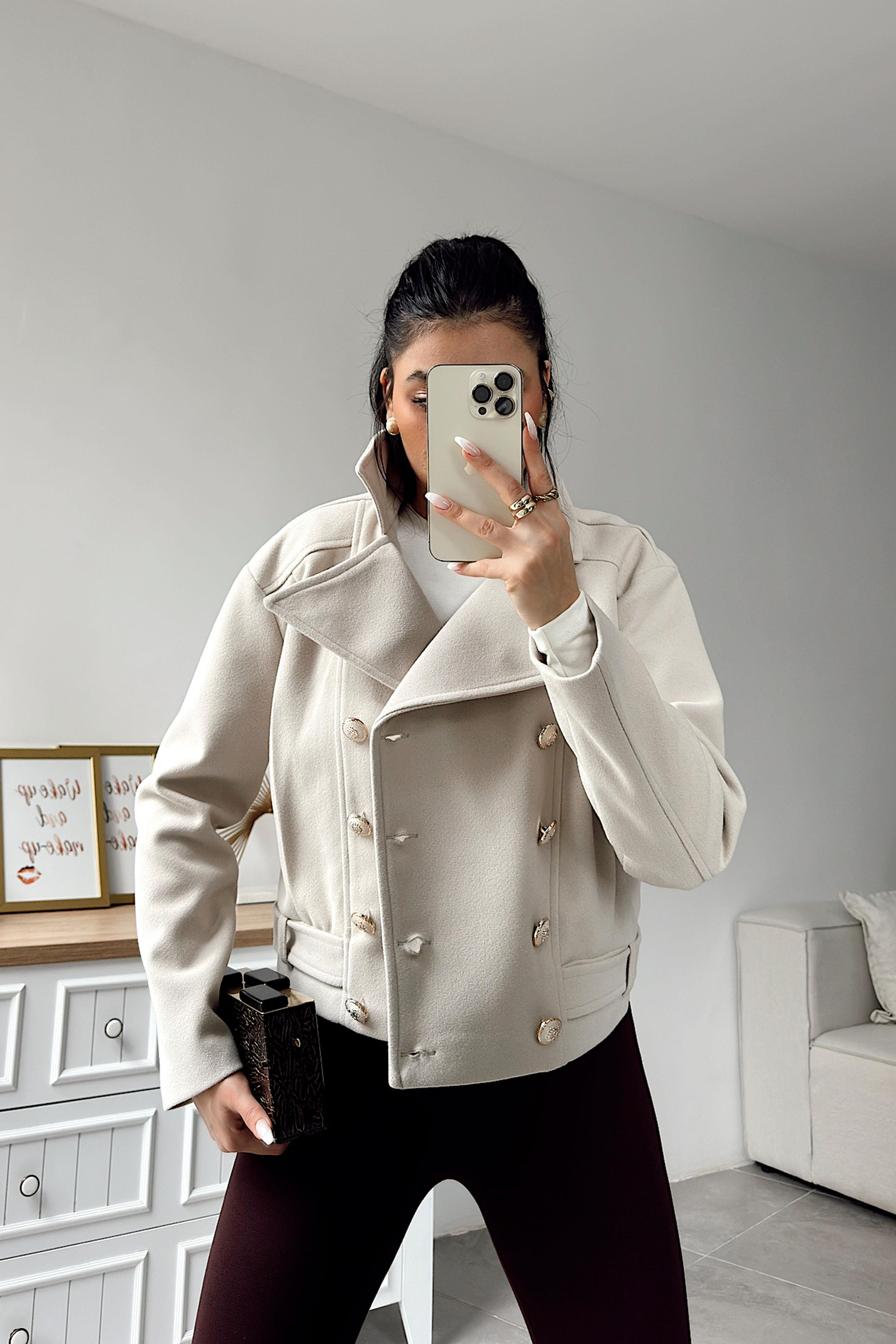 Gold Düğmeli Kısa Kaşe Ceket Taş (FWCKT00088)