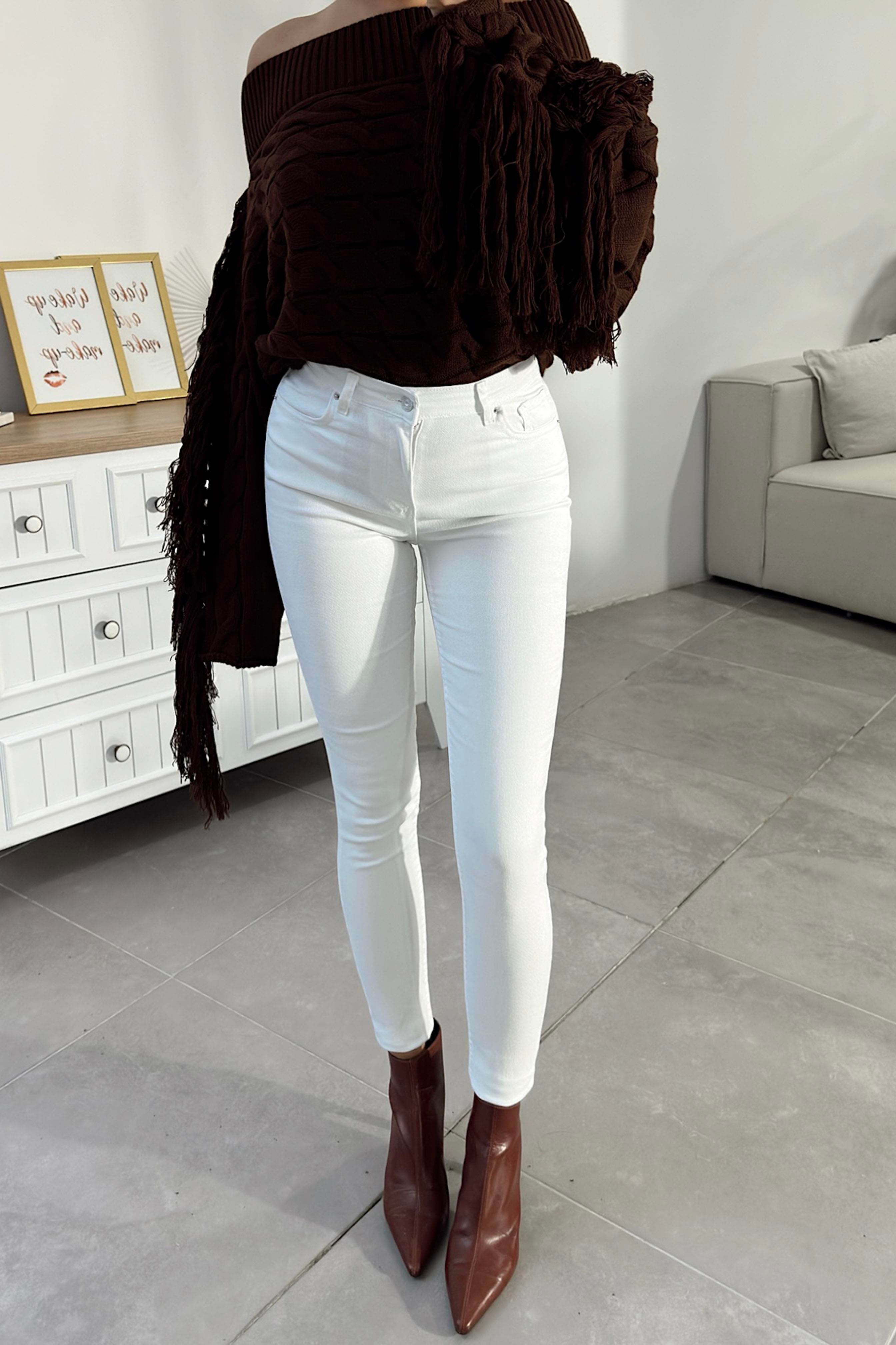 Marka Muadil Yüksek Bel Slim Fit Jean Pantolon Beyaz