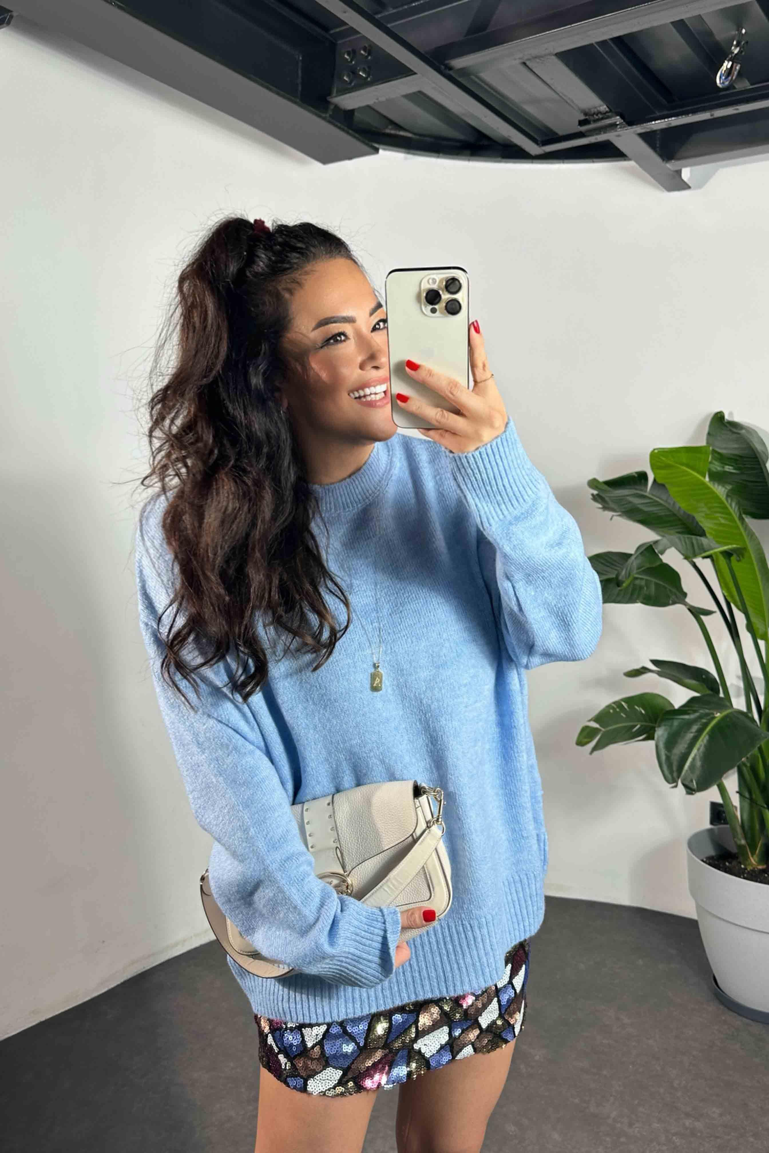 Massi Model Bisiklet Yaka Basic Yumoş Kazak Bebe Mavisi (FWKZK00194)