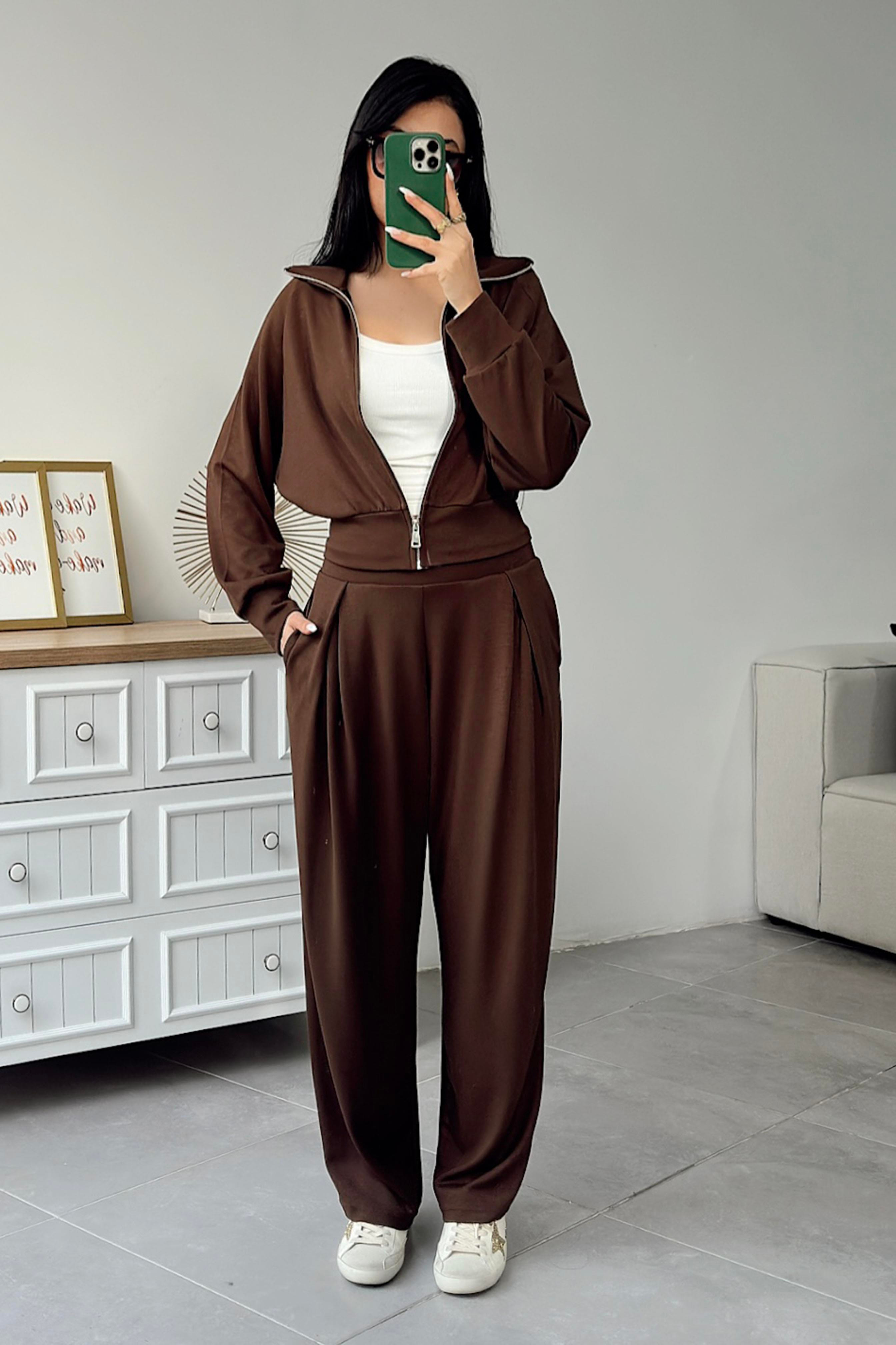 Oys Model Fermuarlı İkili Takım Acı Kahve
