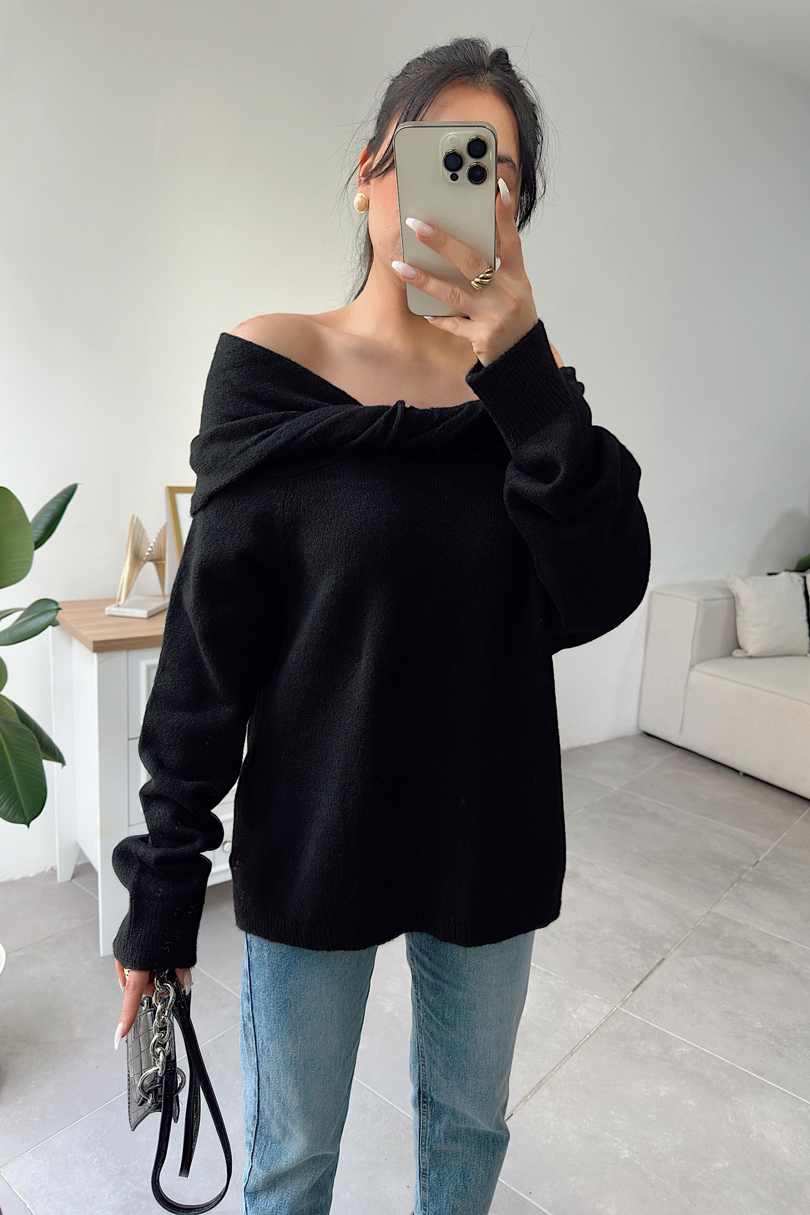 Premium Seri Degaje Yaka Triko Kazak Siyah (FWKZK00224)