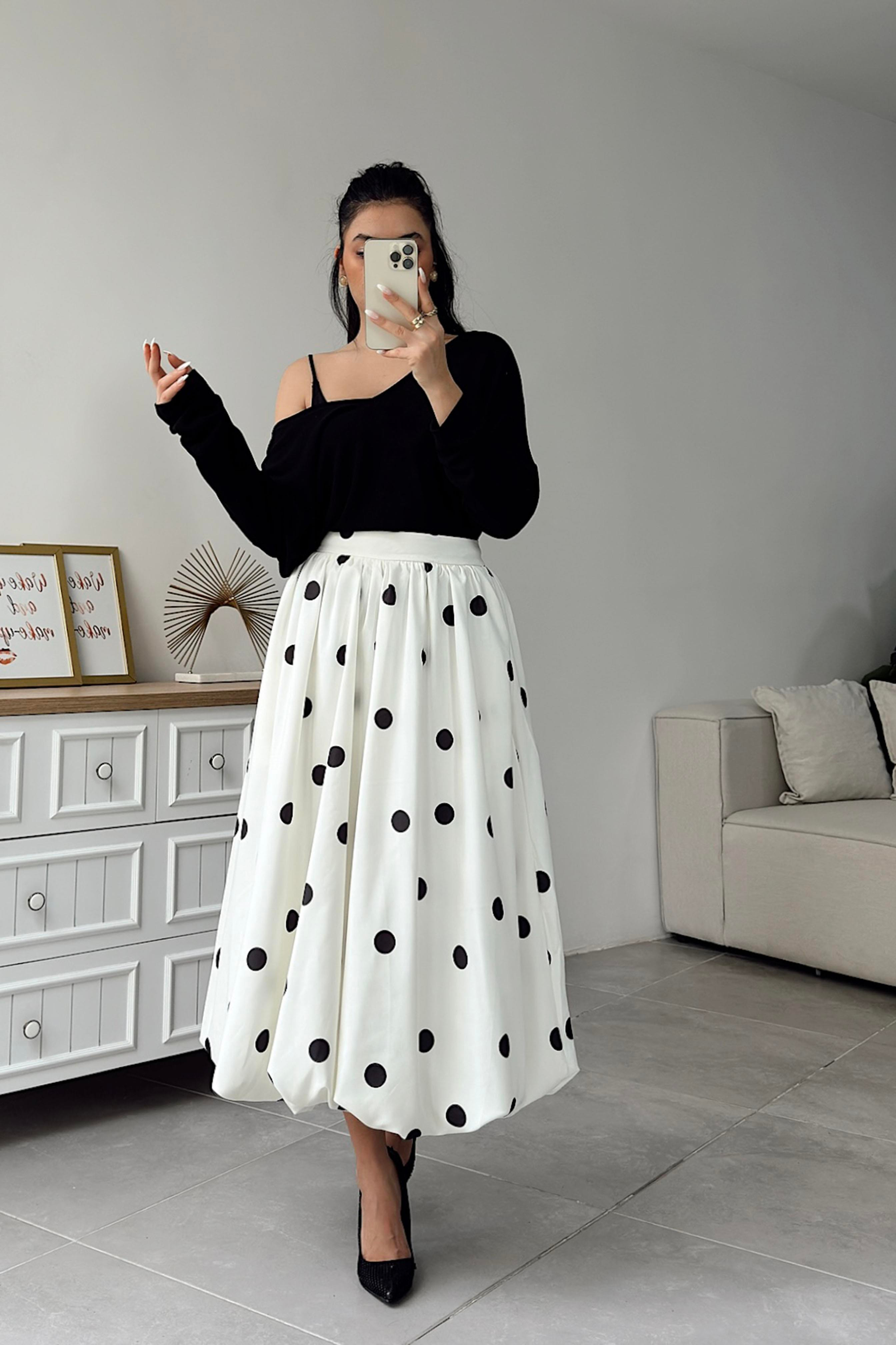 Puantiyeli Balon Etek Ekru Puantiyeli Balon Etek Siyah