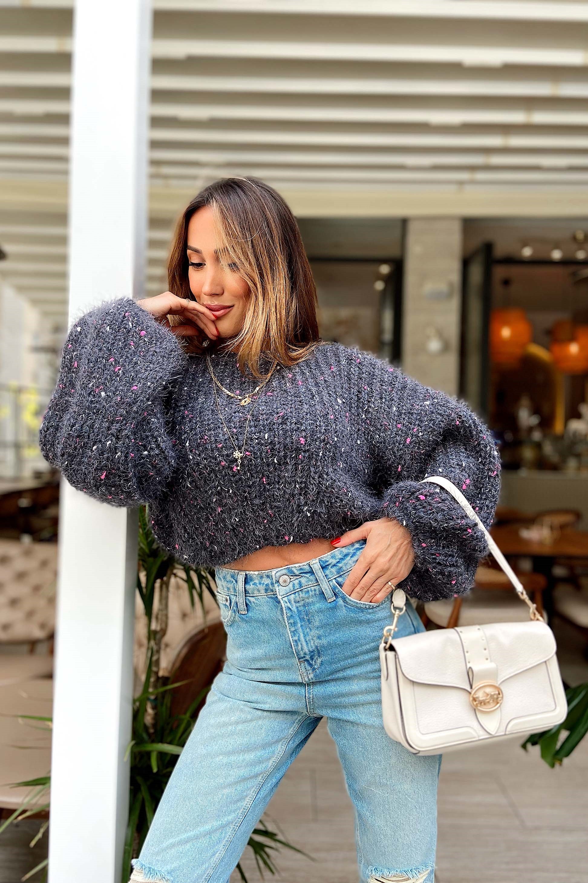 Salaş Tasarım Örme Crop Kazak Antrasit