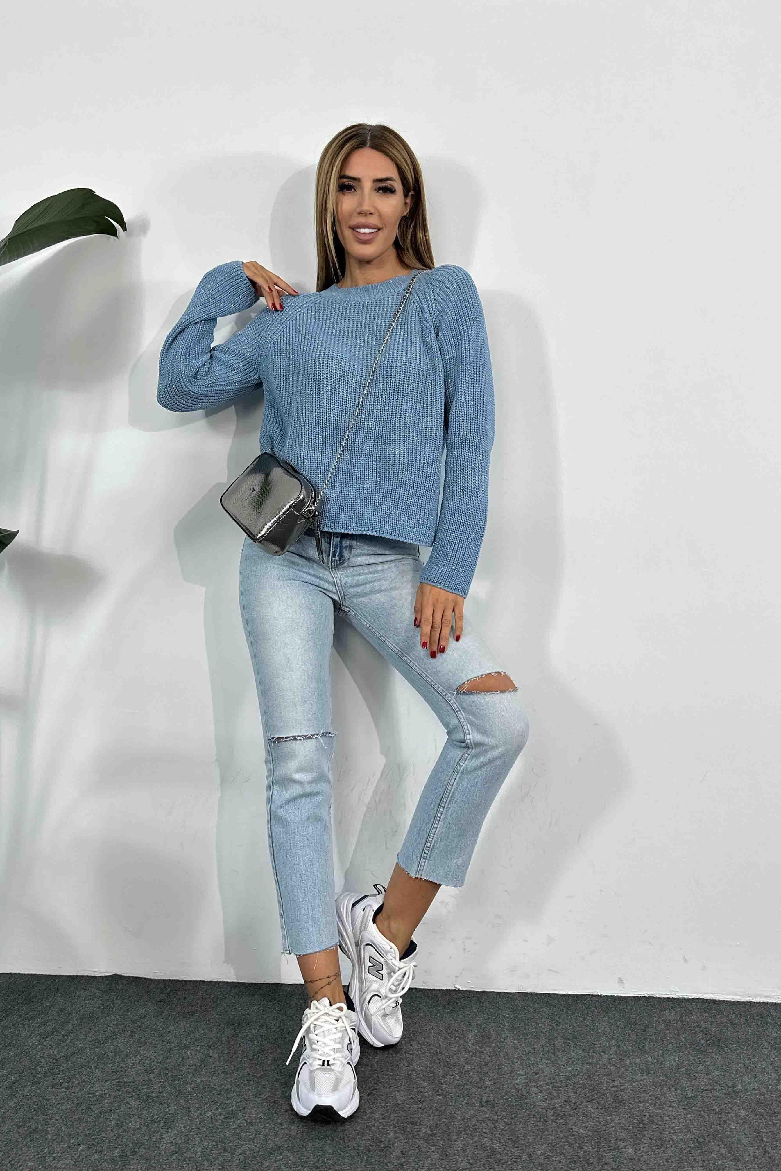 Sim Geçişli Kalın Örme Kadın Kazak İndigo Mavisi (FWKZK00065)