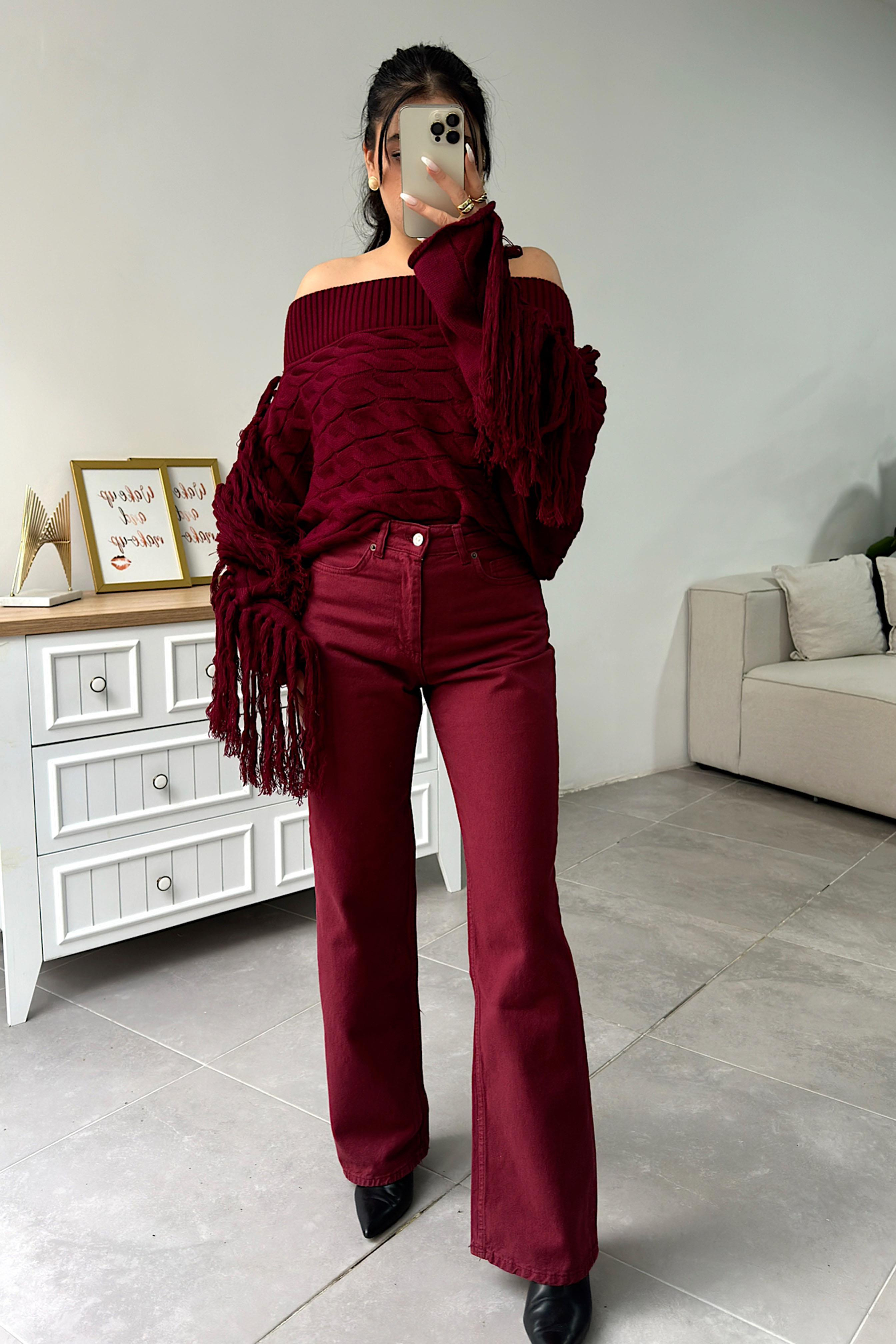 Ultra Yüksek Bel Straight Jean Pantolon Bordo
