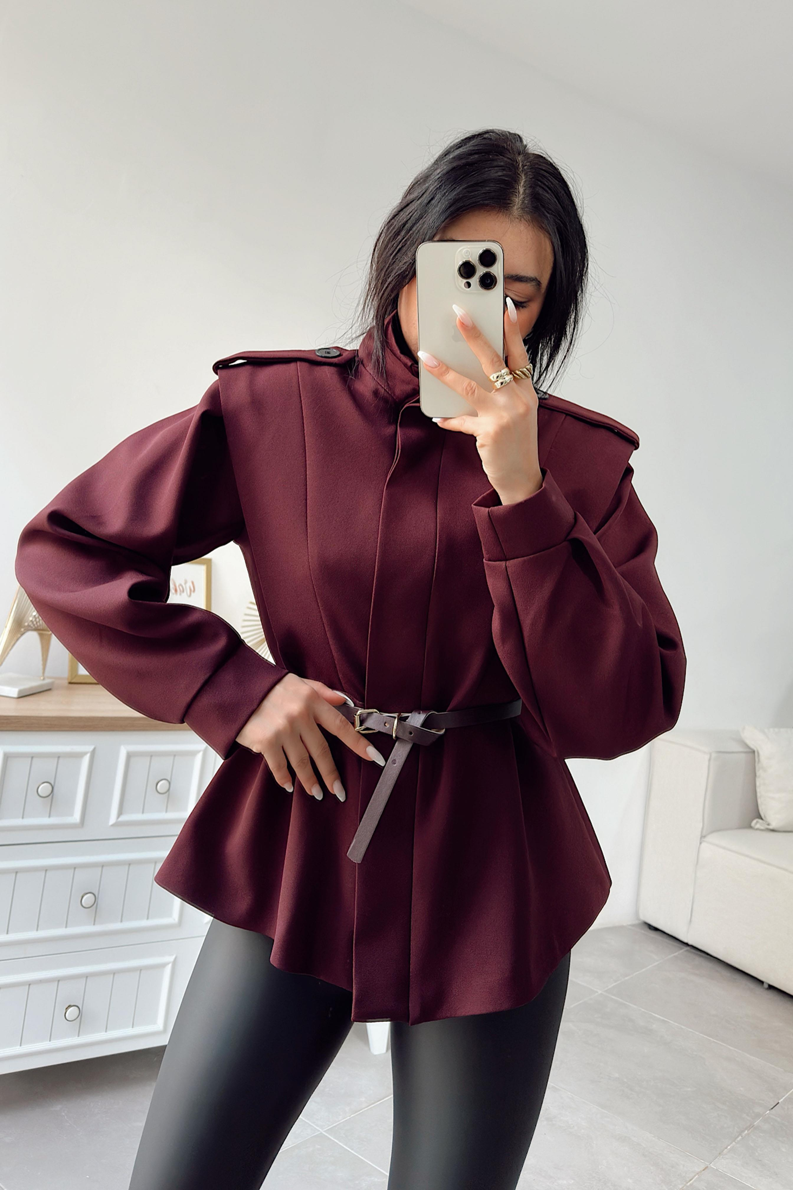 Vatkalı Kemerli Ceket Bordo (FWCKT00087)