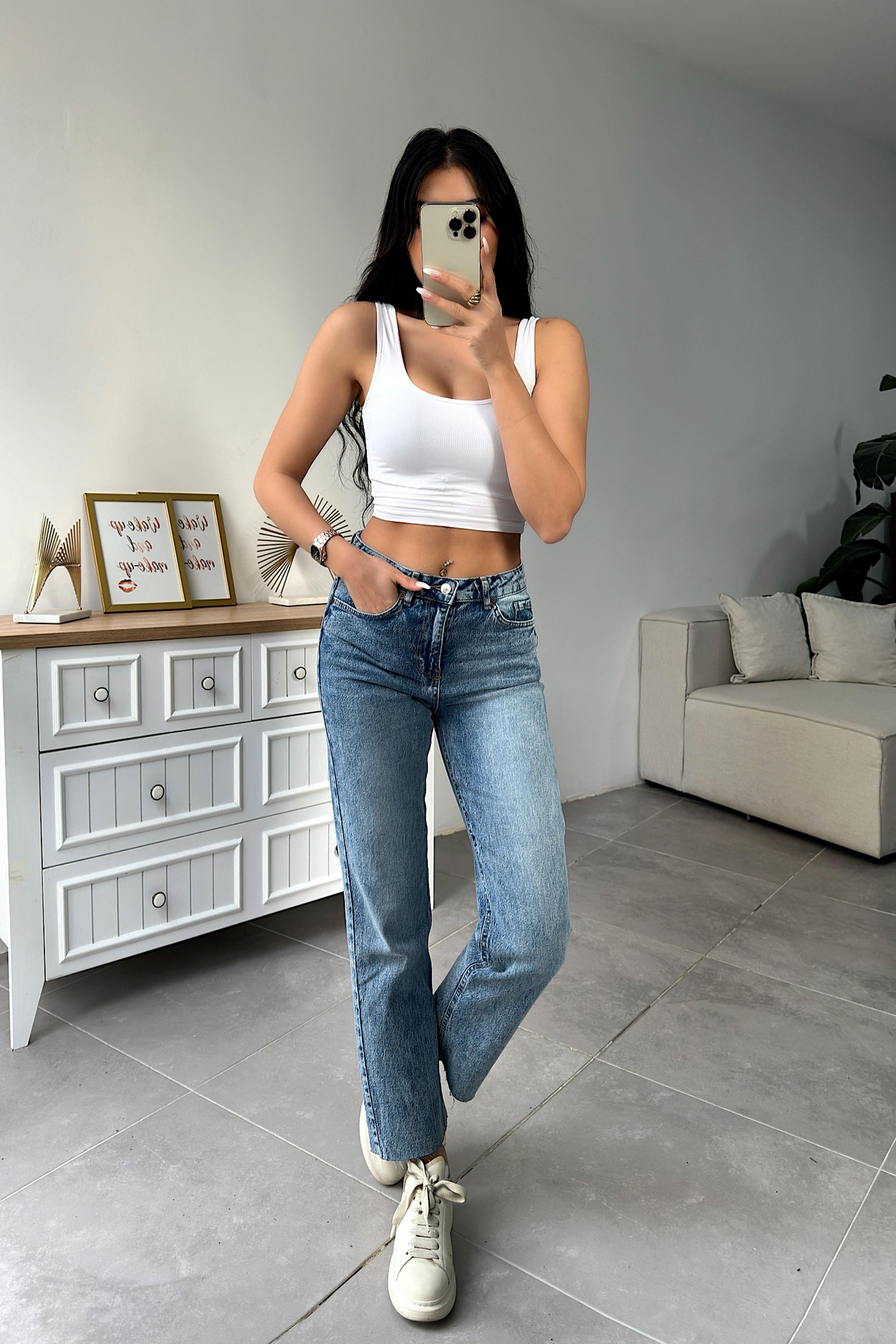 Yüksek Bel Boyfriend Jean Pantolon Mavi (FWJPN00084)